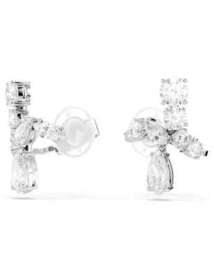 Orecchini placcato rodio che avvolgono l’orecchio a spirale con una moltitudine di Swarovski zirconia di diversi tagli montate a griffe. Da indossare come ear cuff o a lobo.